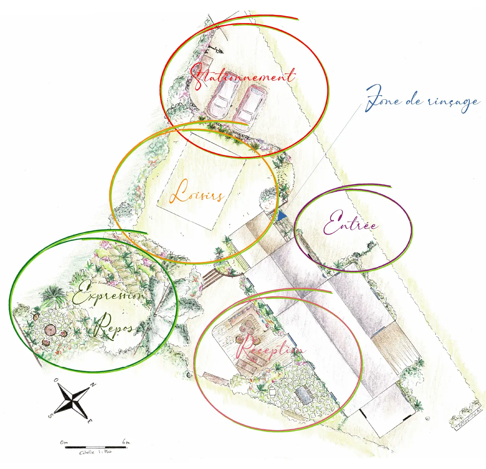 Aménager le jardin sur les pourtours de la maison d’habitation en répondant aux besoins suivants :